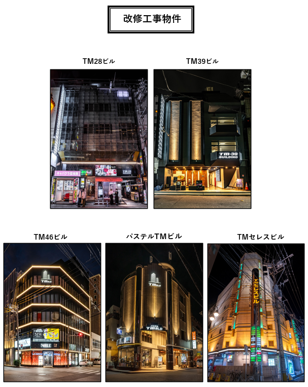 エレベーターリニューアル対象物件はTM28ビル・TM39ビル・TM46ビル・